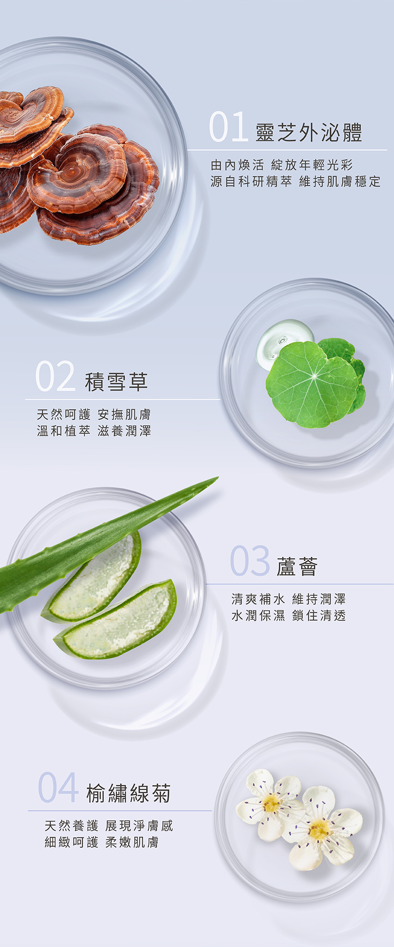 • 榆繡線菊萃取:舒緩皮膚,穩定膚況
