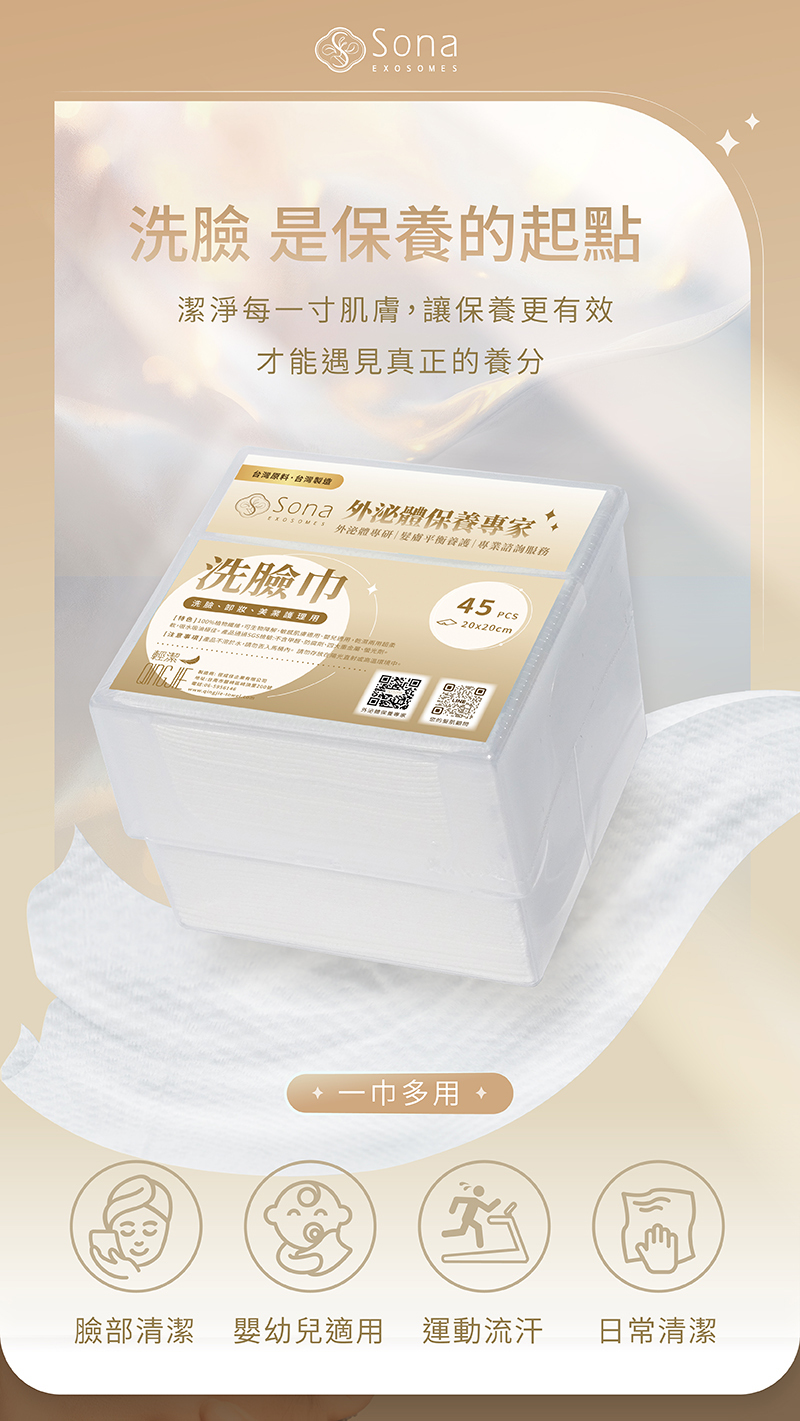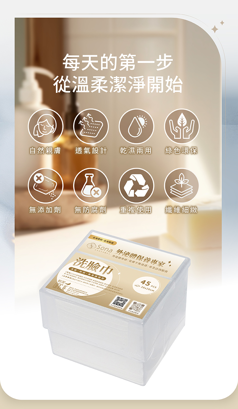 【台灣玻璃專屬賣場】Sona-珍珠紋細緻柔膚洗臉巾 45抽